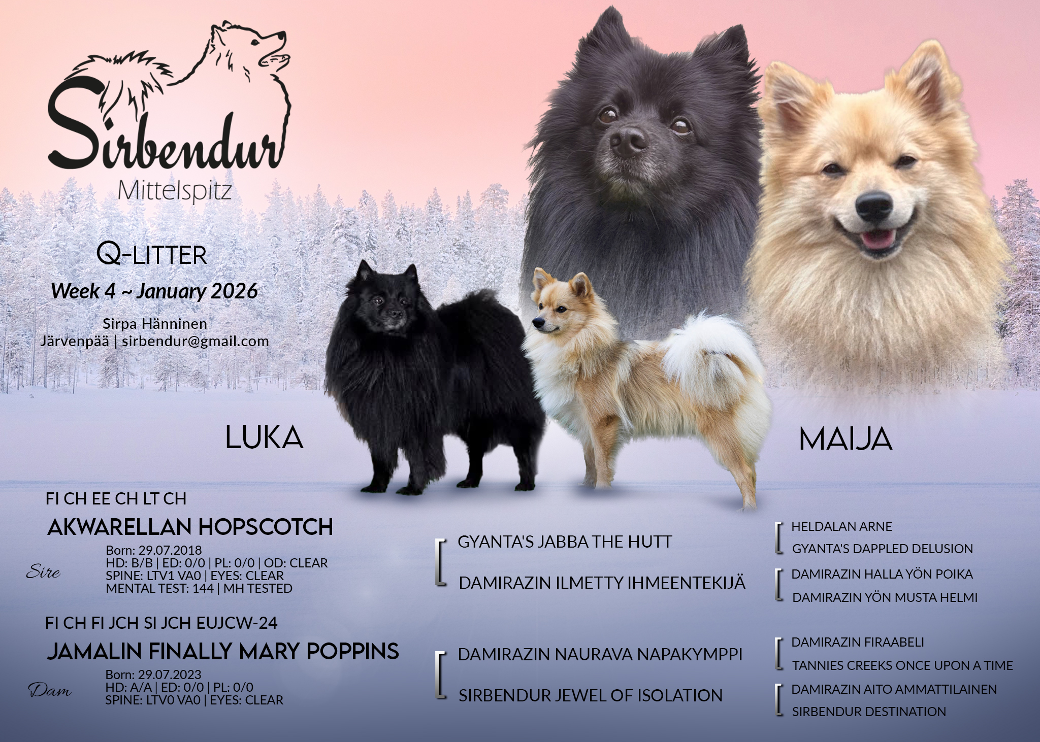 Mikäli kaikki menee hyvin pentuja syntyy tammikuun loppupuolella!